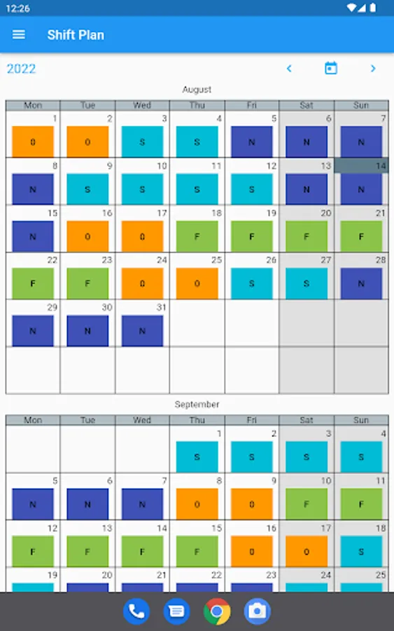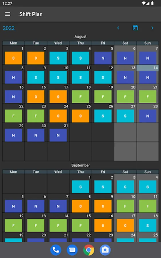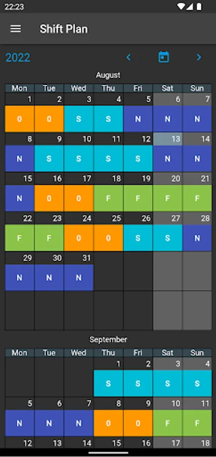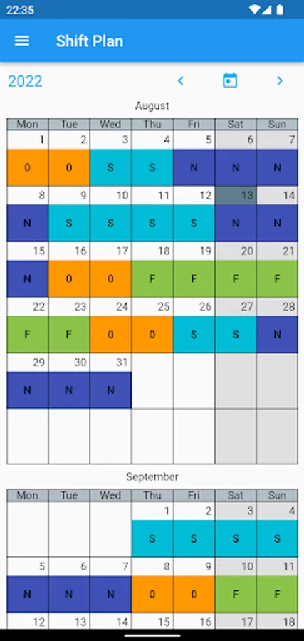 You can enter your shift via the shift rhythm and it will be displayed as a calendar over the years.