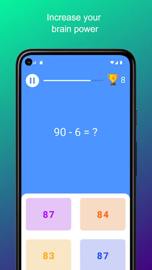 Our app offers various mathematical questions that will help you develop your intellectual facilities. You'll need to solve the questions as quickly as possible under a time limit, which stimulates your brain to work faster, better, and more efficiently. Best of all, our brain teasers don't require any special knowledge, so everyone can boost their brain function and become a math whiz.