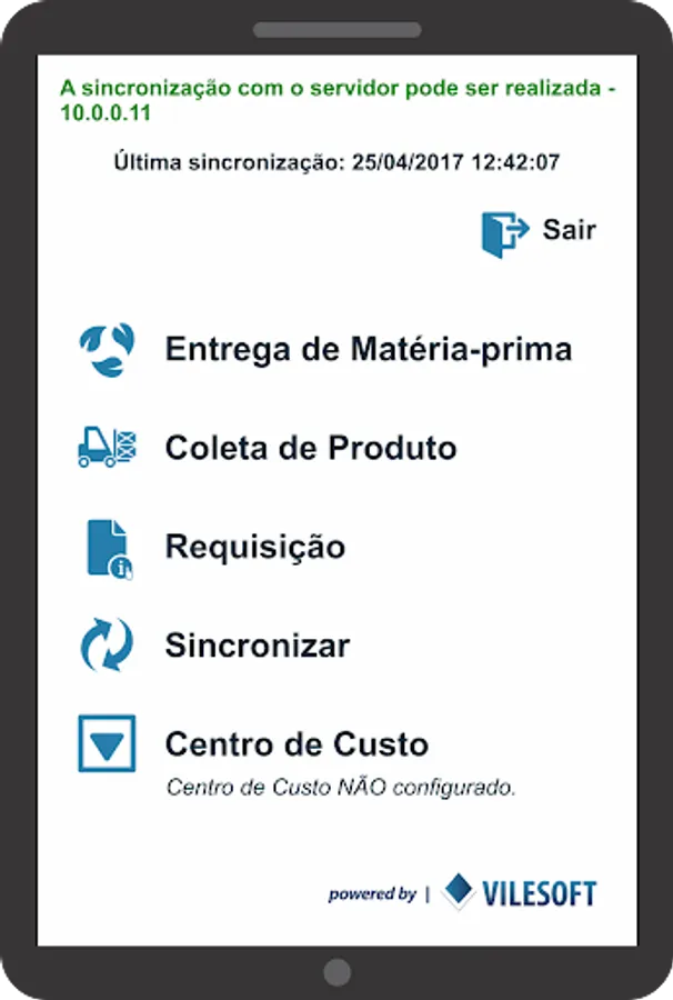 After performing a synchronization with the Vilesoft DON Corporate ERP server requests, deliveries and collections from the center of registered cost in DON Corporate ERP are copied to the mobile device, allowing it to perform delivery and collection of materials and products for production, even without internet access.