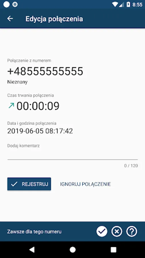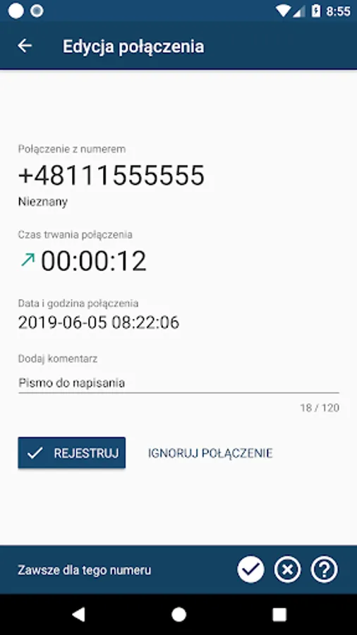 Then user can decide if the call should be registered in the CRM or not (valid credentials are required for the synchronization) . If he chooses to register, an event will be created in CRM, which is later being used to charge clients for the time spent on calls with them.