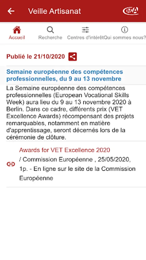 The free application "Crafts Watch" allows you to follow the latest news on crafts and the local economy for more than 20 major themes and sectors of activity, at regional, national and European level.
