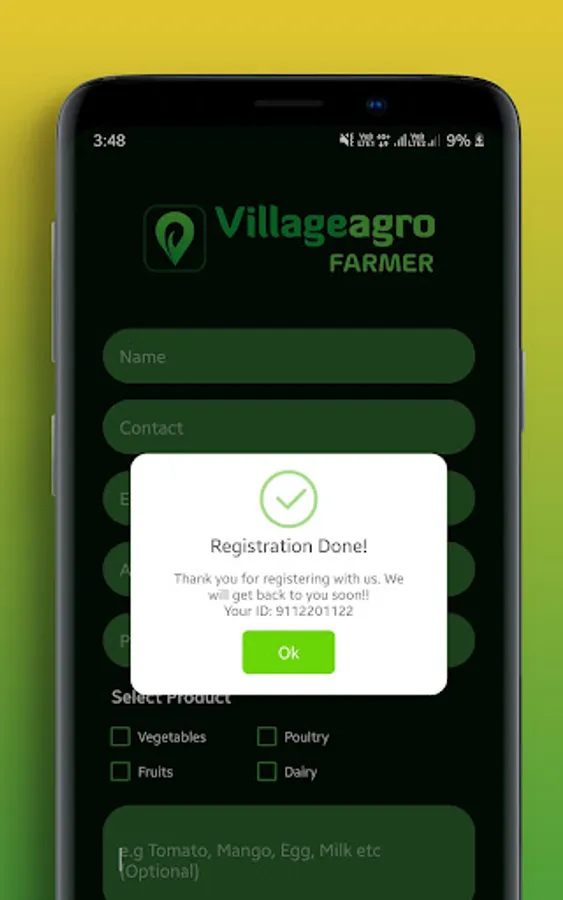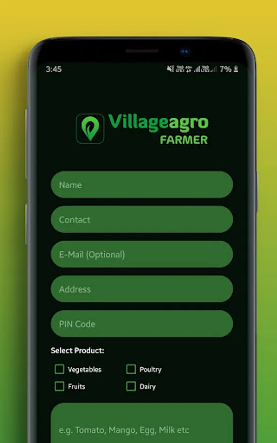 Villageagro app is an F2B (Farmer to Business), based marketplace for fresh & organic fruits, vegetables, poultry & dairy products. The app offers Farmer registration and Business registration options. After the successful registration and KYC, the user will be able to access the dashboards.