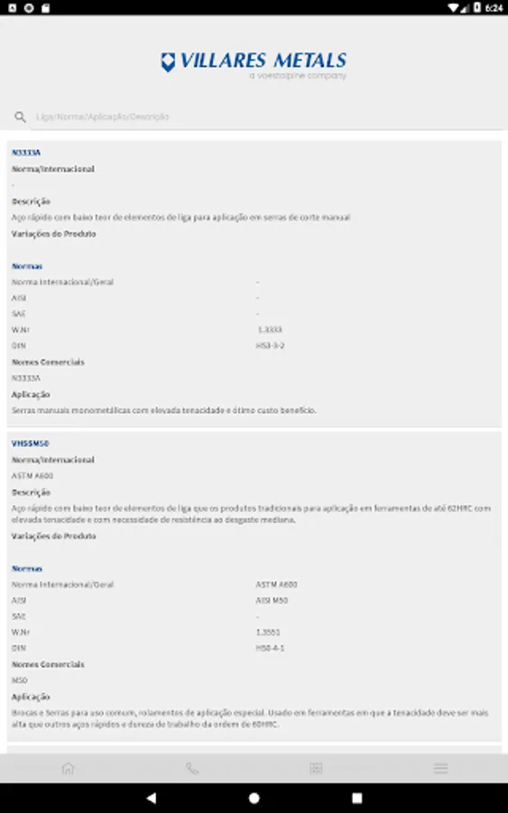 We get an idea of the paper to put it in your hands. With Villares Metals Connect, you will have a complete guide to our products, applications and solutions, as well as: cross-reference data such as segments (automotive, tooling, aeronautics, oil and gas and others), identify specialty steel types and services; find the best solution by segment and needs; share product information with other users; have easier contact with the commercial technician; compare products within Villares Metals portfolio; receive important notifications.