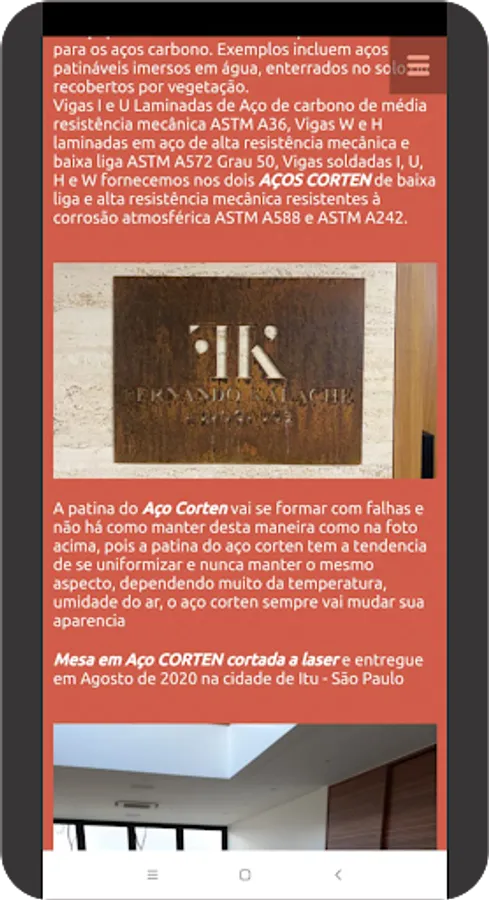 It is a special alloy developed to replace stainless steel in many applications, it is not a steel designed for use in architecture. This use was due to the rustic look of Corten Steel, Corten Steel is produced only in coils and thick plates, that is, flat steel.