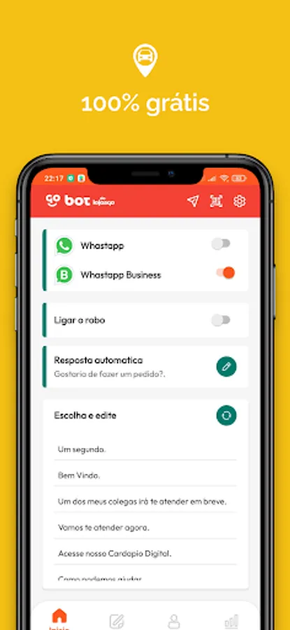 With LojasGO Robo you automatically reply to personalized messages received from WhatsApp or WhatsApp Business with our AI. You have several settings to customize each autoresponder to your needs. Install it now!