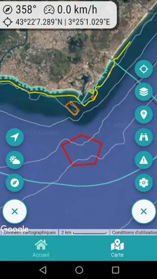 A cartographic tool suitable for navigation which allows you to position yourself in real time on a map of the Agathois coastline and to identify the various underwater environments as well as the Roc de Brescou reserve, the organized mooring areas, the path under - sailor, etc.
