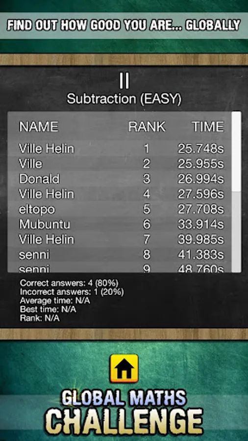 Solve calculations as fast as possible, and compete with the world! Show your global rankings to friends, parents, teachers... Can you beat them all?