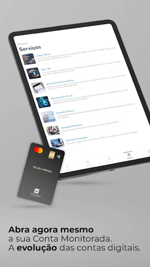 Get all the solutions for your business by opening a digital account at Villela Brasil Bank. We take your company from debt to credit recovery.