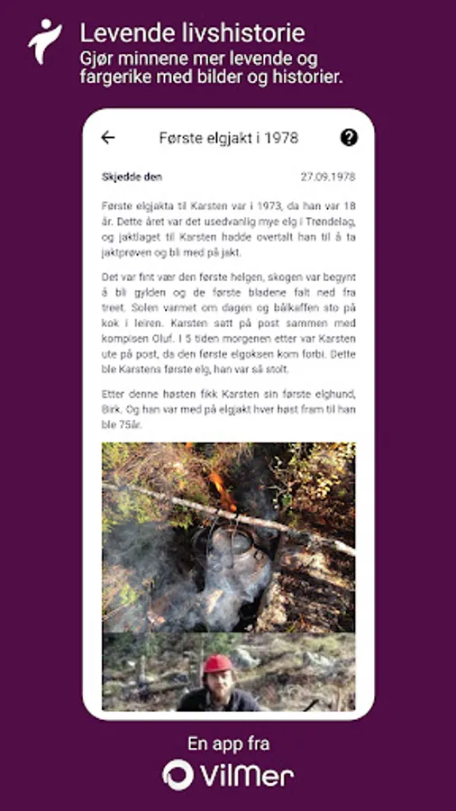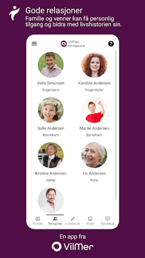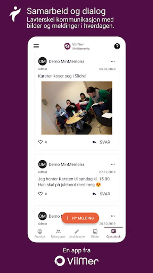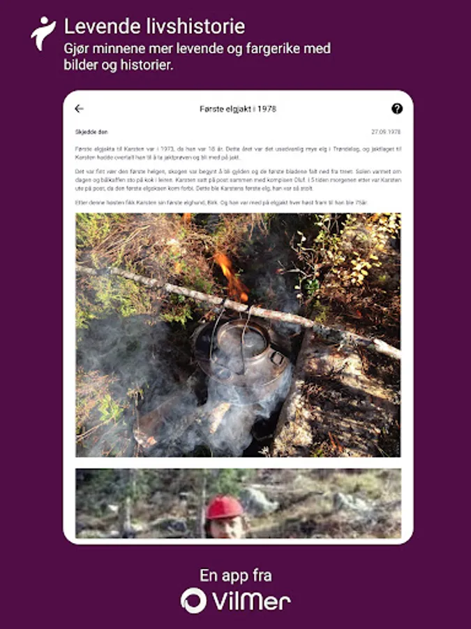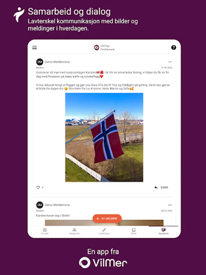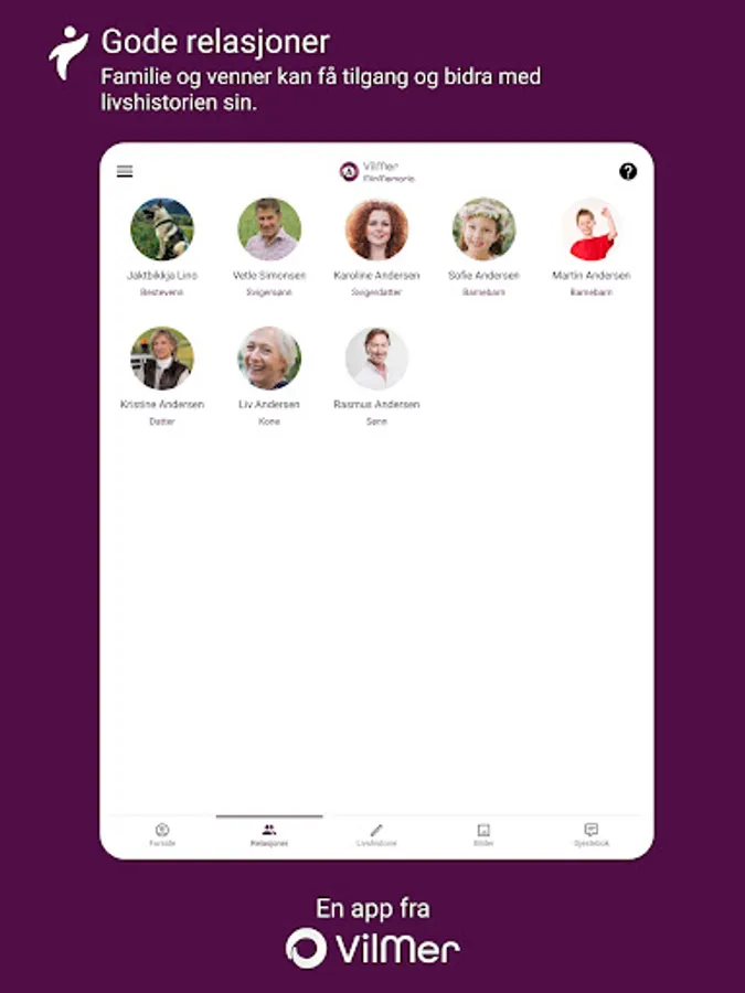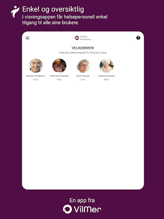 This is MinMemoria's viewing app. This is adapted for use in environmental work and in meeting with the user. Here you can safely browse through memories and look at photos, without the risk of making unwanted changes to your life history. The guest book is always available anyway, so you can share good moments should they arise.