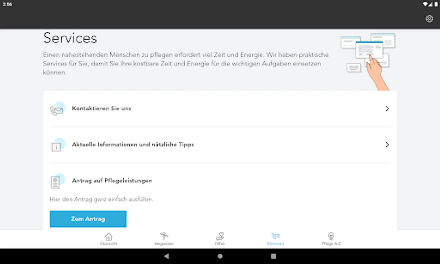 In our care app, you and your relatives can quickly and easily find digital support on all aspects of care. We offer you all the important information and services in just one app - on your smartphone or tablet.