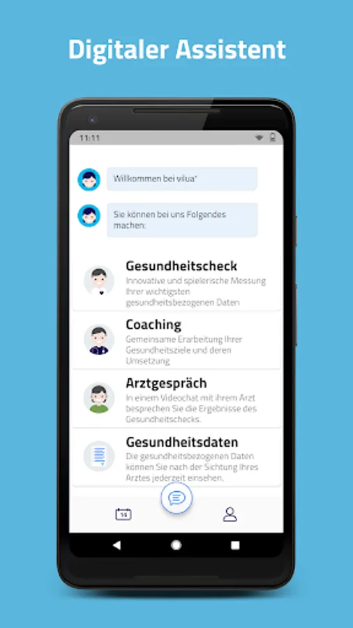 Vilua⁺ provides a comprehensive service tailored to your needs. Depending on what your employer offers, the functional scope of Vilua⁺ will vary.