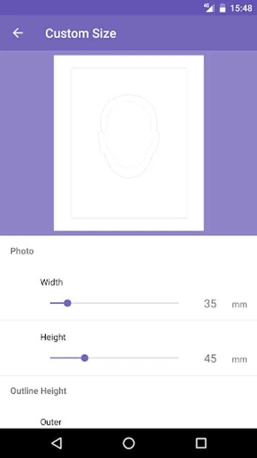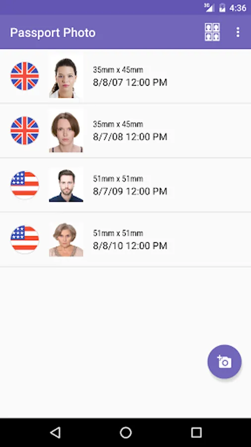 This application has defaults for the countries listed below and also allows you to create a custom photo size if yours is not listed.