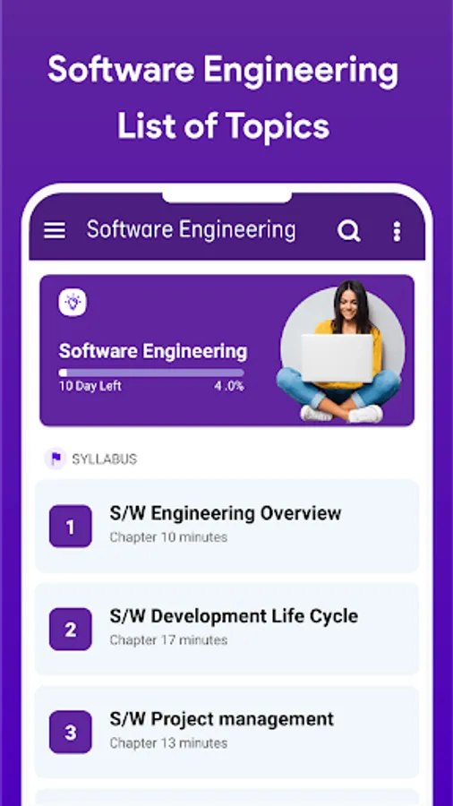 The “Software Engineering” app has a simple and intuitive user interface. It is the best app to let you learn Software Engineering for free. So, what are you waiting for? Download the app now to become an expert at Software Engineering.