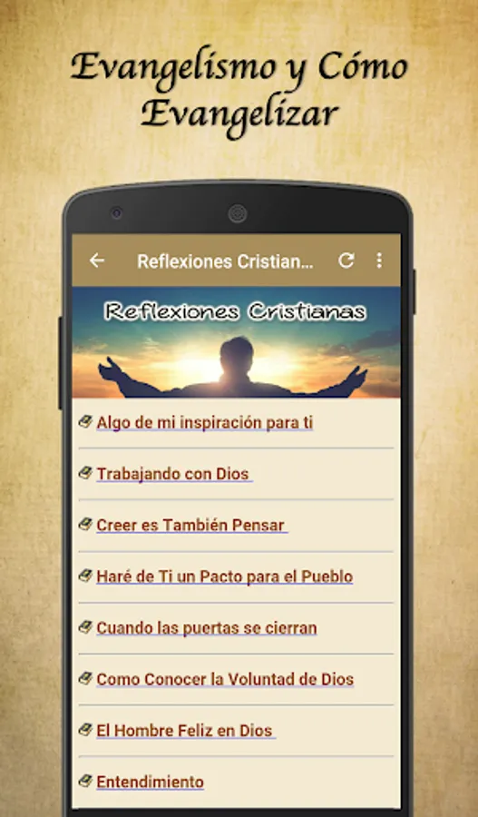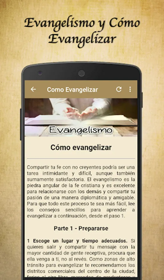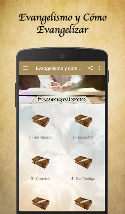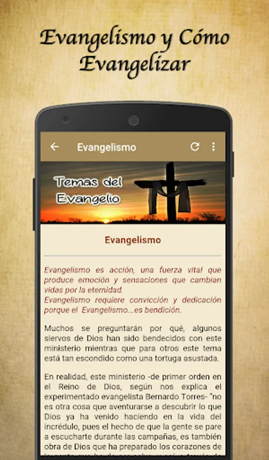 Use this tool daily and expand your knowledge about evangelism, discover everything related to evangelism and learn to evangelize very easily with the help of this utility. It is ideal for maintaining the gospel message as the engine of a life of growth in Christ.