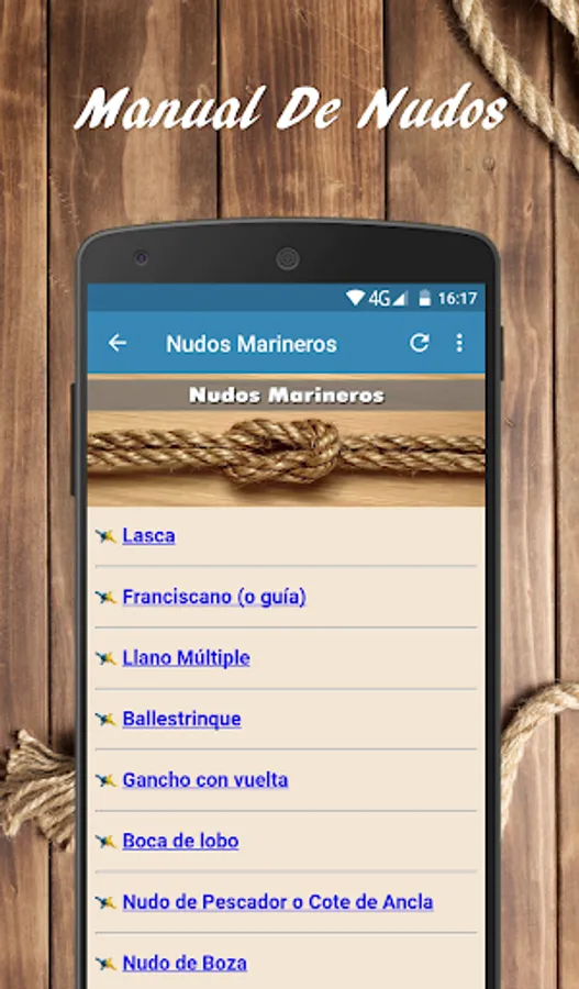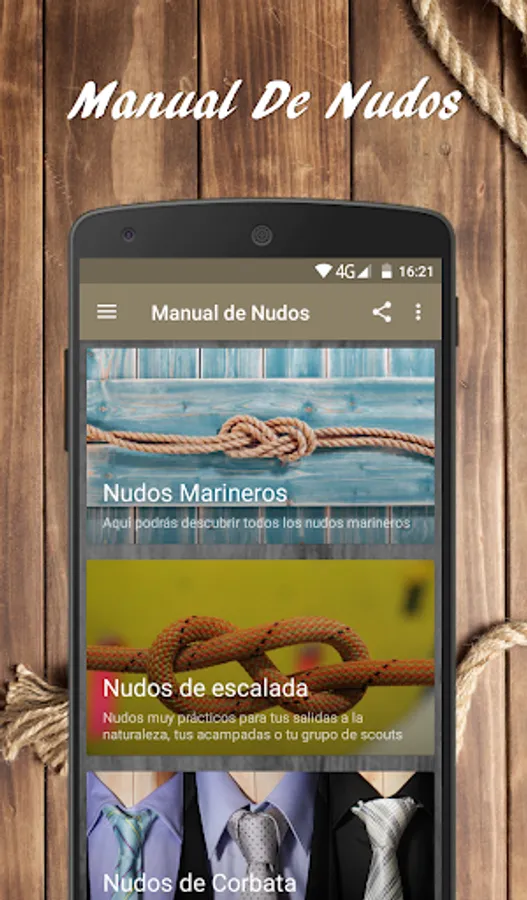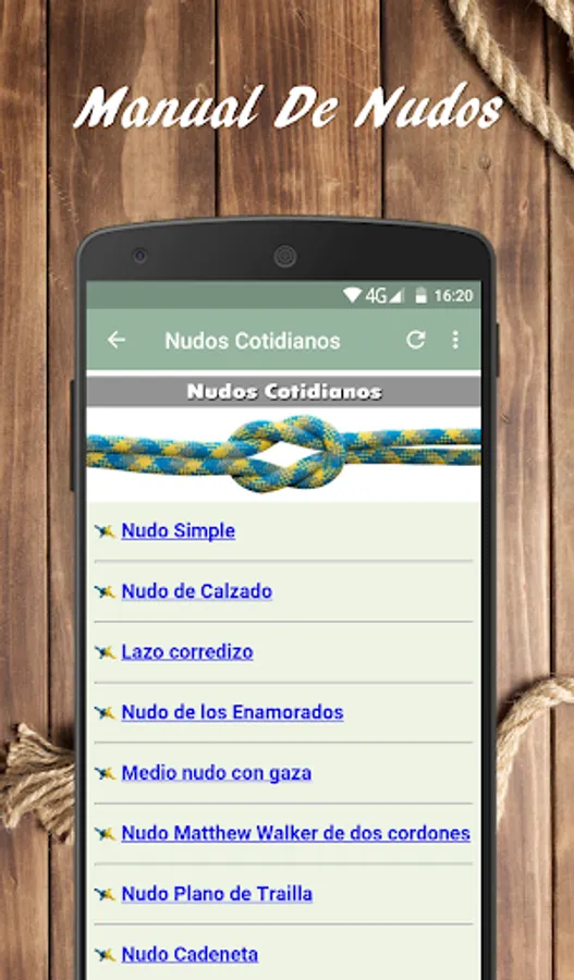 In this application you will find graphically how to make knots easily and an explanation of each in its different uses.
