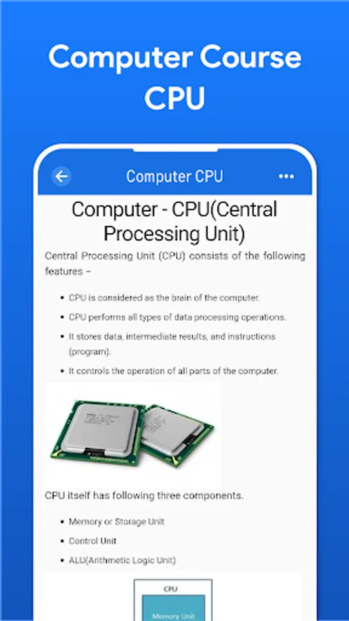 This computer tutorial app covers all the topics of computer fundamentals like Input Device, Output Device, Generation, Memory, CPU, Motherboard, Computer Network, Virus, Software, Hardware, etc.