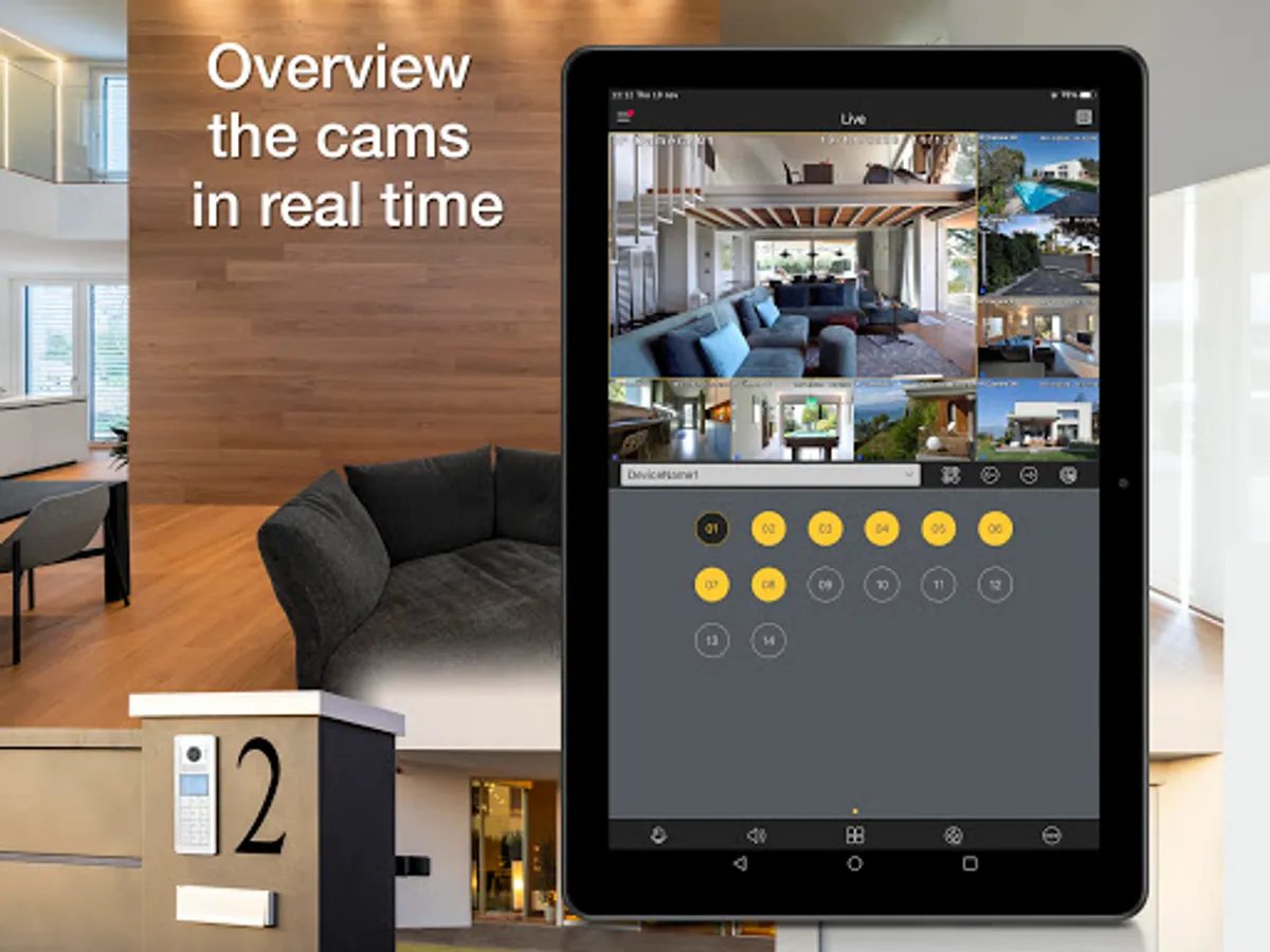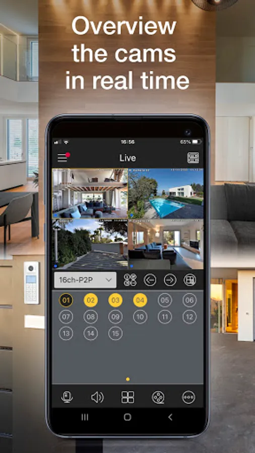 By-camera allows you to view Elvox CCTV systems via smartphone and tablets. New and existing systems of both IP and AHD technology are compatible. You can control the cameras and complete some settings of video recorders (DVRs and NVRs). Create your favorite screens by combining video streams from different systems and different technologies into a single screen.