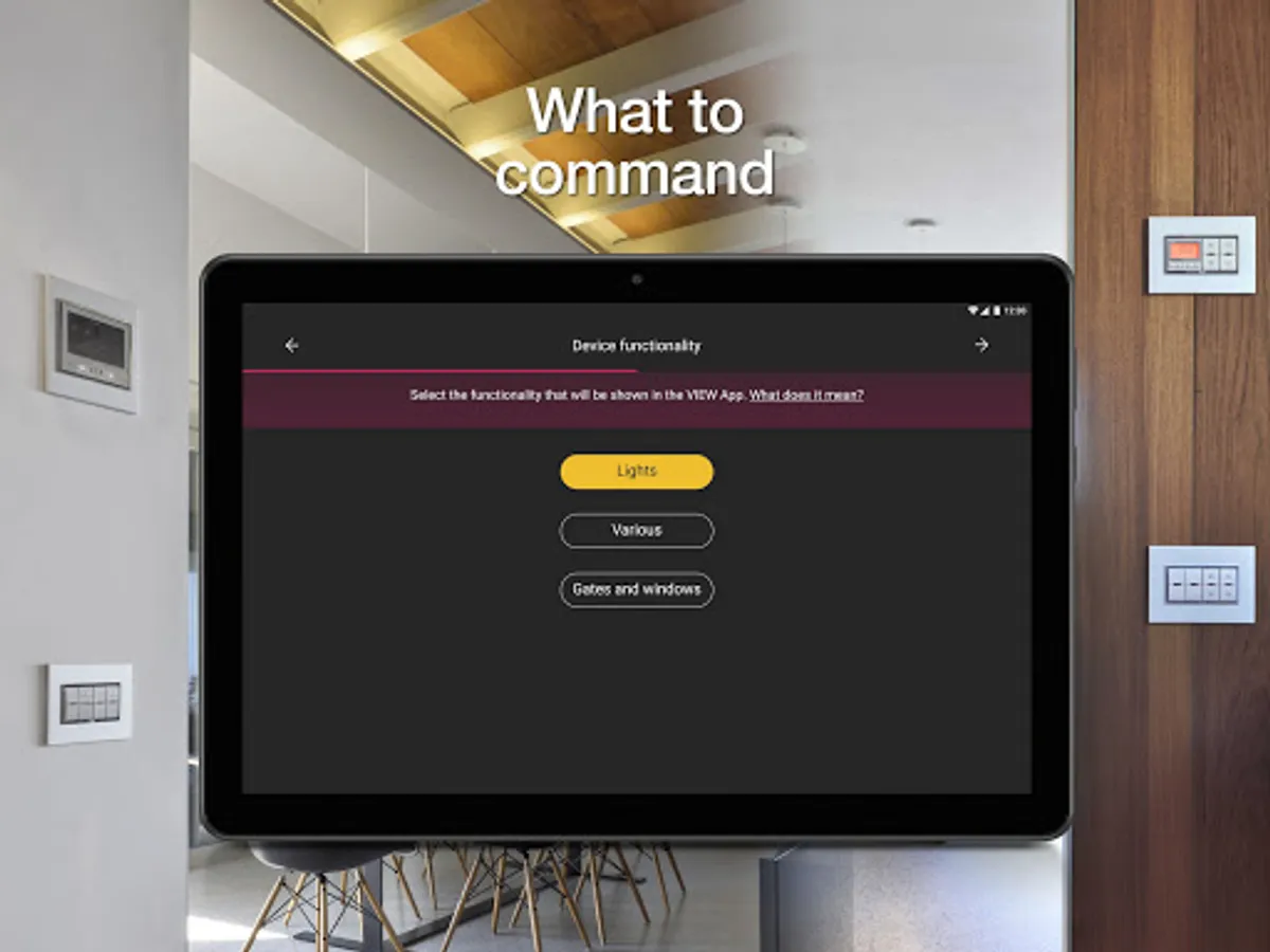 The VIEW Wireless connected system allows the smart management of lights, roller shutters, electrical socket outlets and scenarios. The devices liaise with one another in a mesh network based on the Bluetooth 5.0 standard; they are installed like traditional devices beside electro-mechanical 1-way switches, push buttons and 2-way switches and thanks to a Bluetooth/wi-fi gateway, they allow connectivity with the Vimar Cloud for integration with smart speakers and local and remote control via the VIEW APP. The connected devices allow the creation of smart systems both in new buildings and in renovations and, thanks to the easy installation, also in existing traditional systems in the form of a simple functional upgrade.