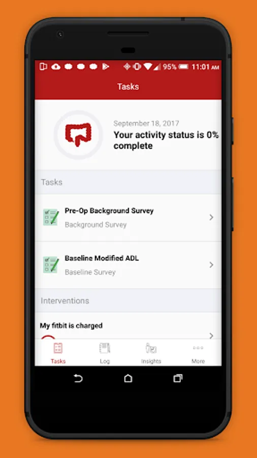 Through this App, you can complete clinically relevant surveys, measure your activity through sensors on your Android, track your care progress, and receive important reminders.