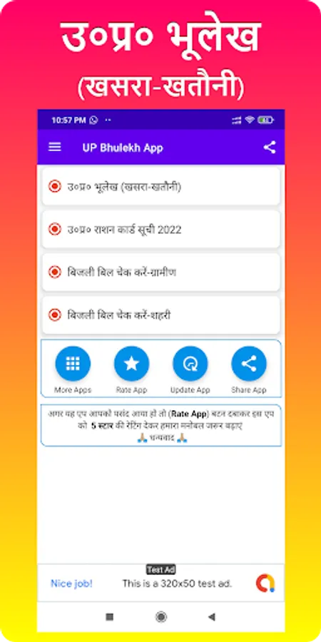 इस एप के द्वारा आप अपने मोबाइल से घर बैठे (उ०प्र० भूलेख खसरा-खतौनी , उ०प्र० राशन कार्ड सूची 2022, उ०प्र० बिजली बिल -ग्रामीण/शहरी ) चेक कर सकते हैं |