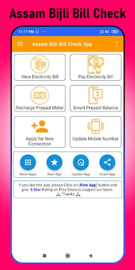 This (Assam Bijli Bill Check App) app is very useful for Assam electricity users. By using this app users can check their electricity bill, prepaid meter recharge, smart prepaid balance, apply for new connection and update mobile number in account online. Besides this consumer can also view their energy bill online and pay their energy bill online with receipt and SMS confirmation. This App can be called by some other names like Assam bijuli bill check app, bijli bill check karne wala app and Assam Light Bill Check Online App.