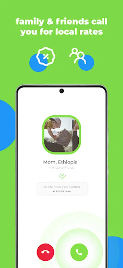 Vimo is a mobile app that provides you with an Ethiopian or Afghan phone number so you can stay connected with your family and friends back home. With our free trial, you can test out our service for 7 days and recharge your family's phone number at a fraction of the cost of international calling.