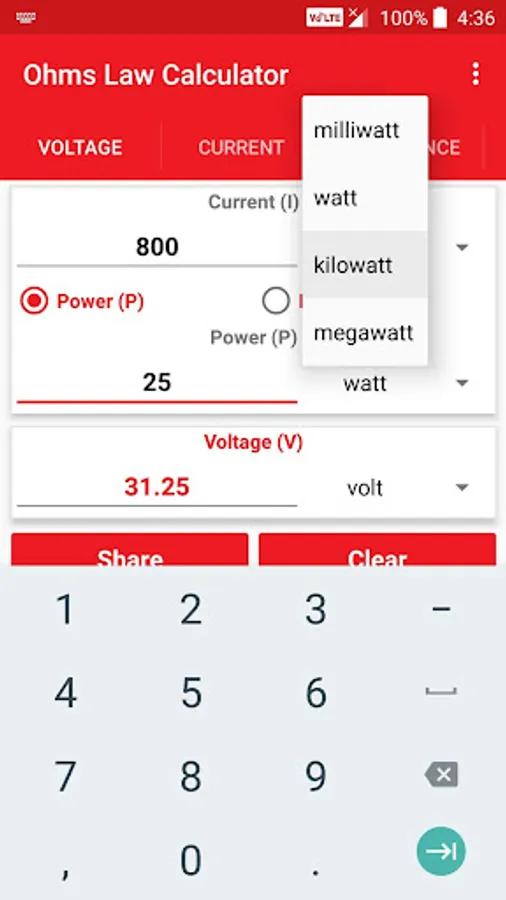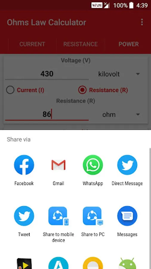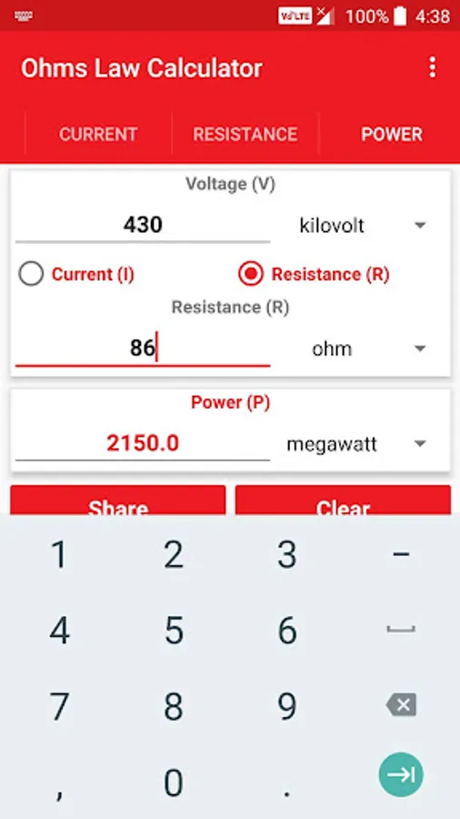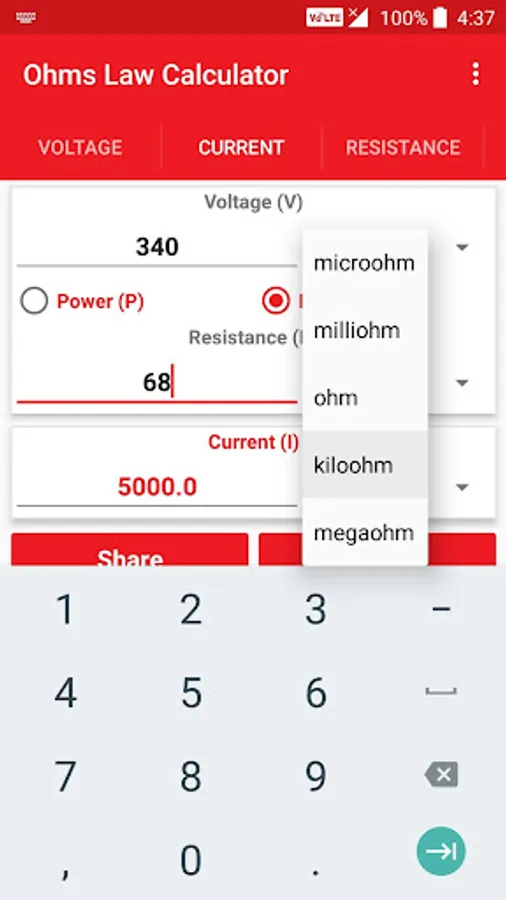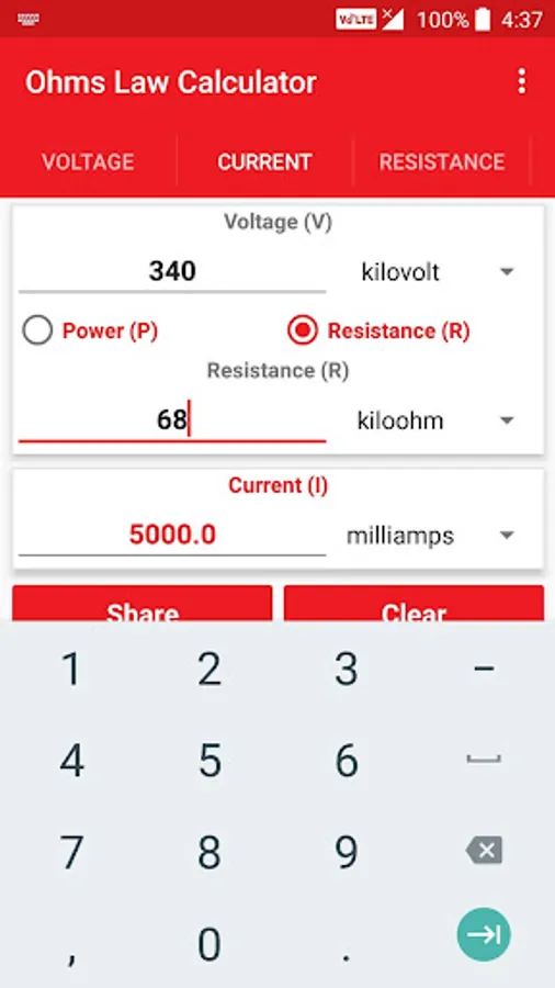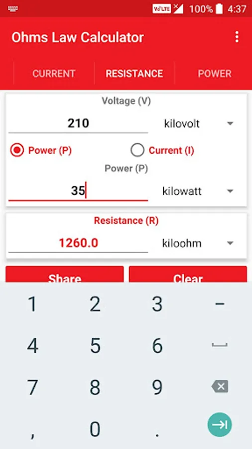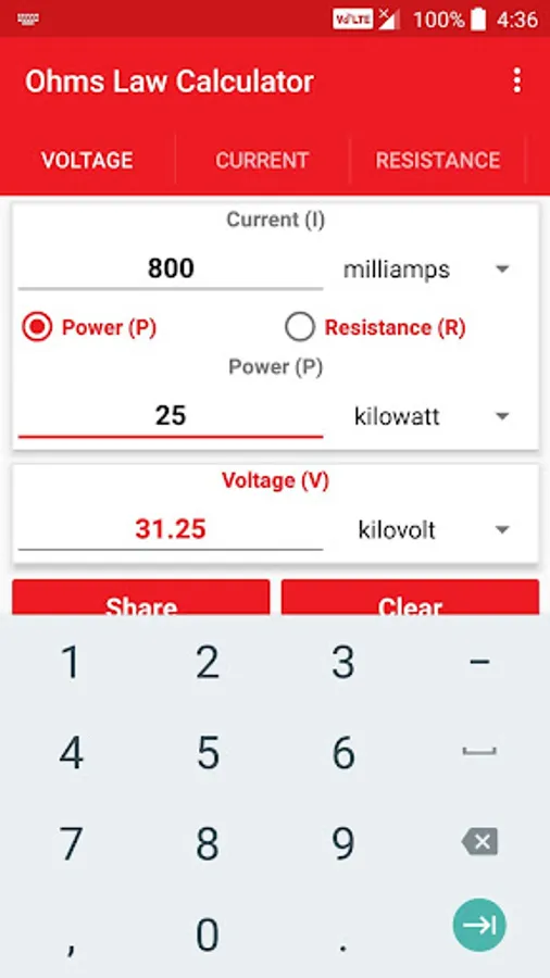 Ohms Law Calculator provides the best way to calculate Voltage, Current, Resistance and Power. Accurate Calculations and Conversions with every Unit and Value Change. Calculated values and results can be shared to social media, mail, messages and other sharing apps. An essential everyday utility. Formulas and Definitions are provided with all calculators.