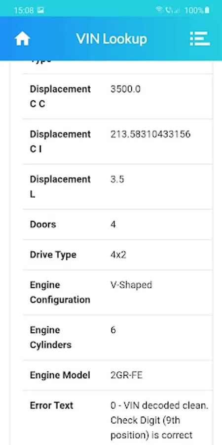 All you have to do is enter the VIN series of the vehicle. Then wait until the data is ready and displayed. The application is still in development, some VINs may not be decoded.