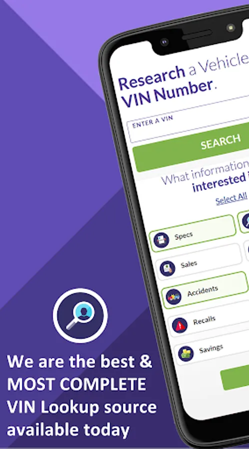 Our app makes it quick and easy to find information about your new or used vehicle based on the VIN. Type in the VIN and the app decodes it and gives you access to all kinds of valuable information such as accident history, sales reports, recalls, and so much more.