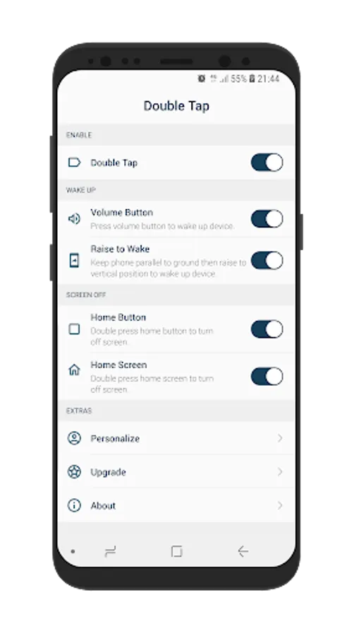 * Double tap home screen to turn off screen