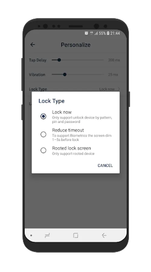 * We need you activate this application in ACCESSIBILITY SERVICE because we have to use Accessibility API to do action BACK, RECENT, HOME and LOCK the device.