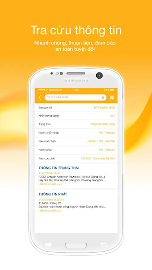 VietnamPost is a Financial Transaction Support application for customers installed on iOS or Android smart mobile phones, allowing customers to make transactions safely and conveniently.