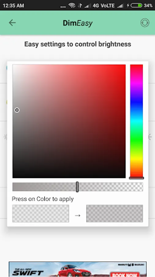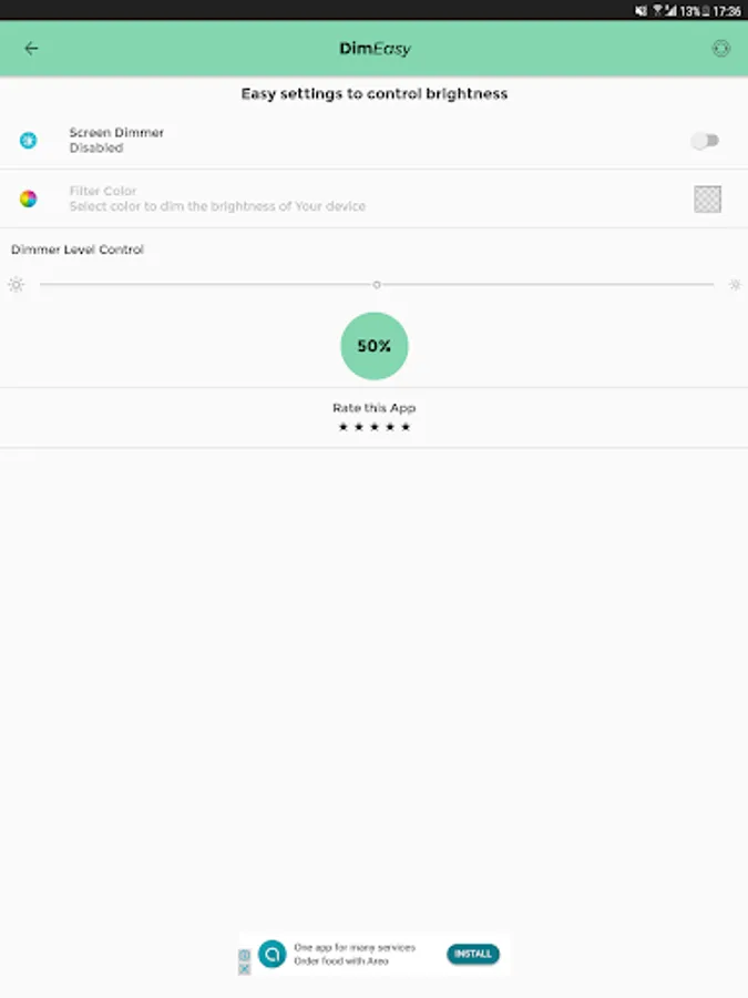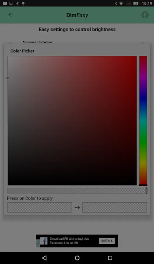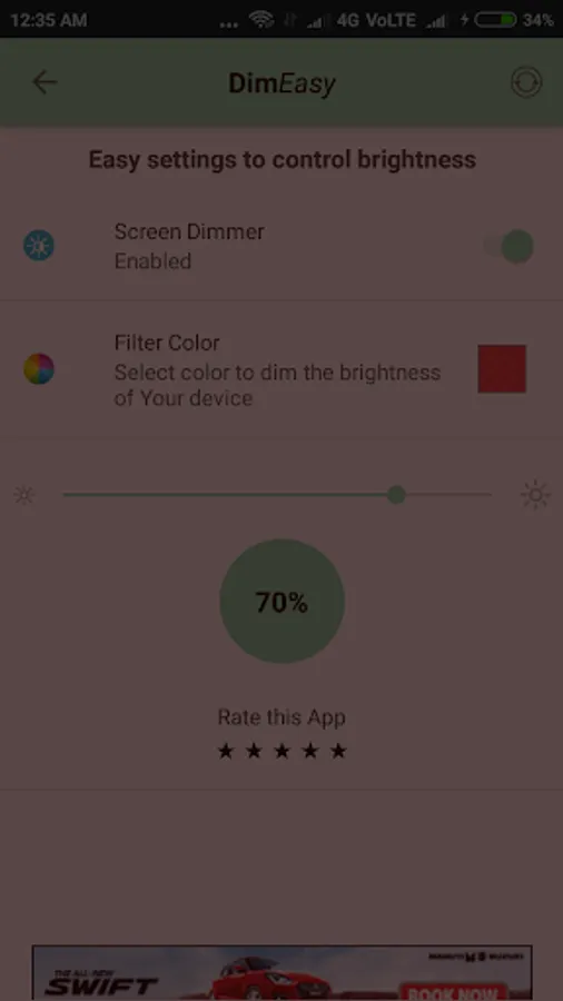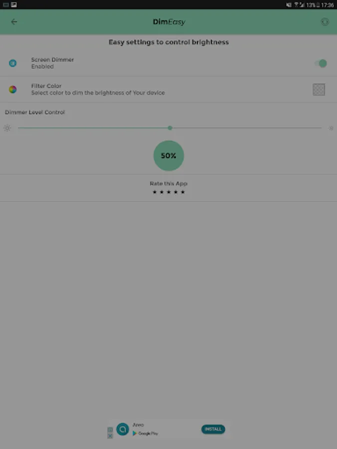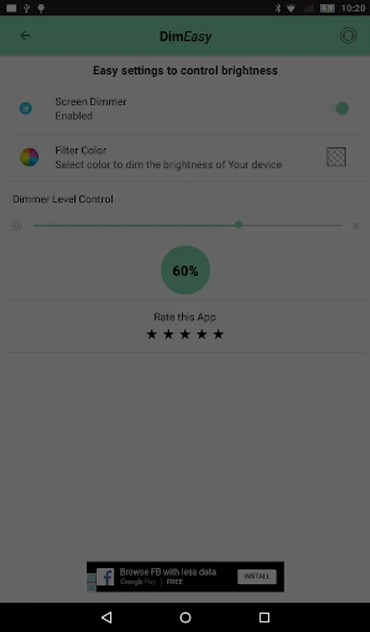 Dim Easy is a light weight app which provides simple and useful options to dim the brightness of Phone/Tablet. Dim Easy has below options to play with: