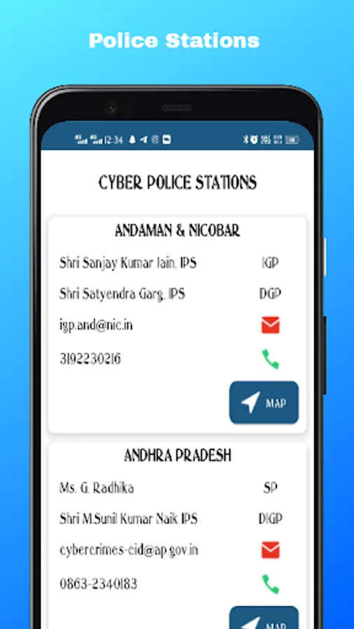 The app hosts a list of Cyber police stations, which the users can navigate to the nearest station.