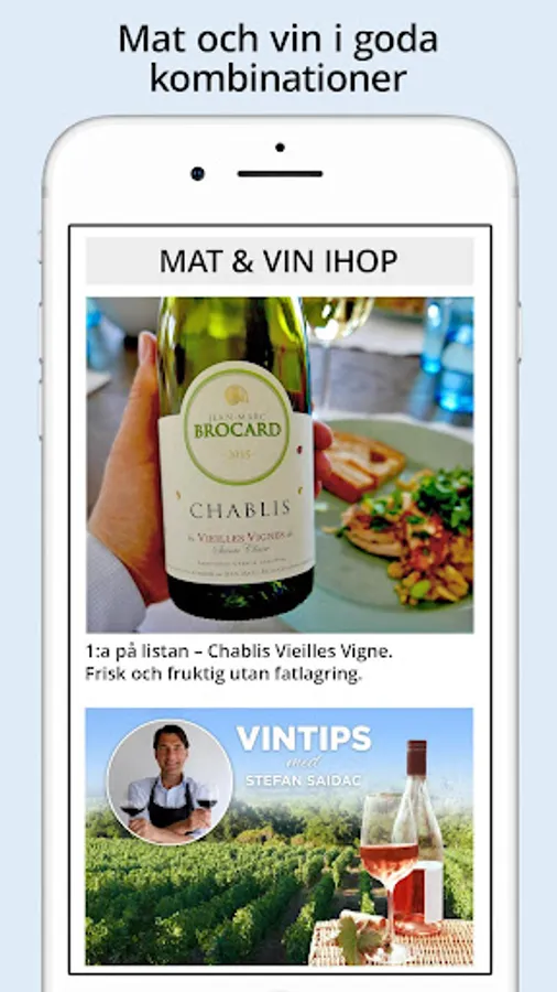 • Which wine goes with the food? In the app you will find tips on good and safe wine and food combinations. There is advice on pairing - on matching the wine and the ingredients so that the whole is successful.