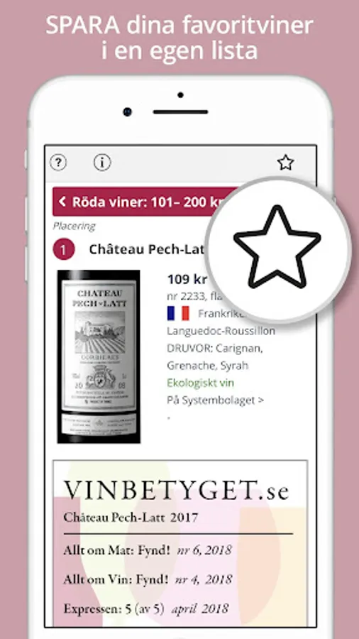 VinBetyget's app helps you find the best wines quickly and easily. Our app is of course free: