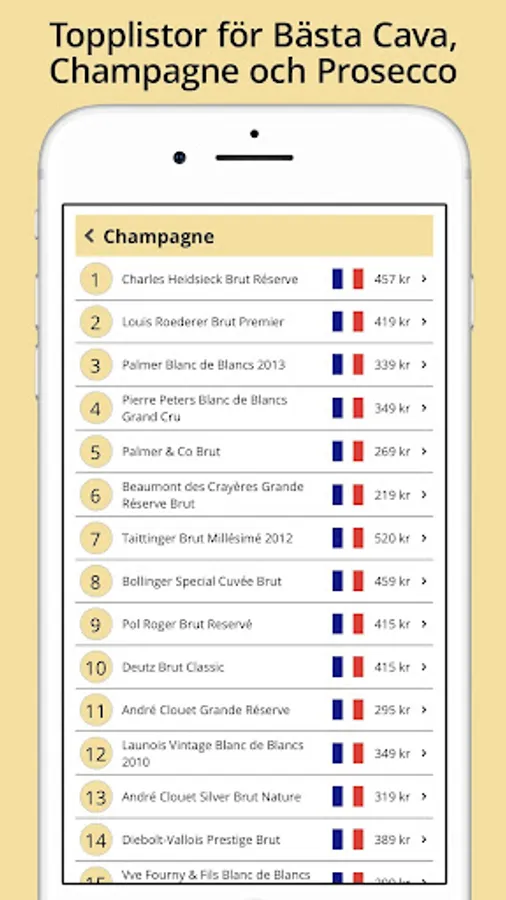 • 12 Top Lists with the best wines: Red & White wines, Rosé wines, Champagne, Prosecco and Sparkling wines such as Cava and Crémant.