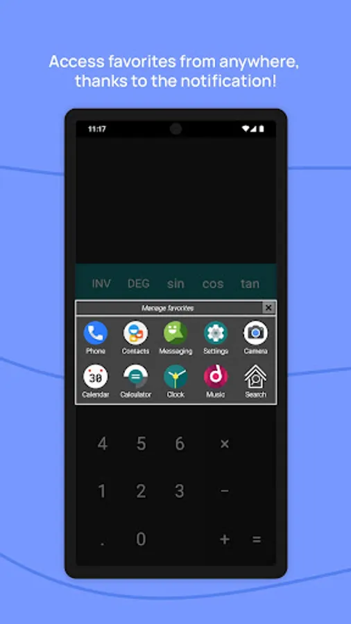 From this clean home screen, simply slide your finger down to display your favorites applications, or up to see the complete list of applications.