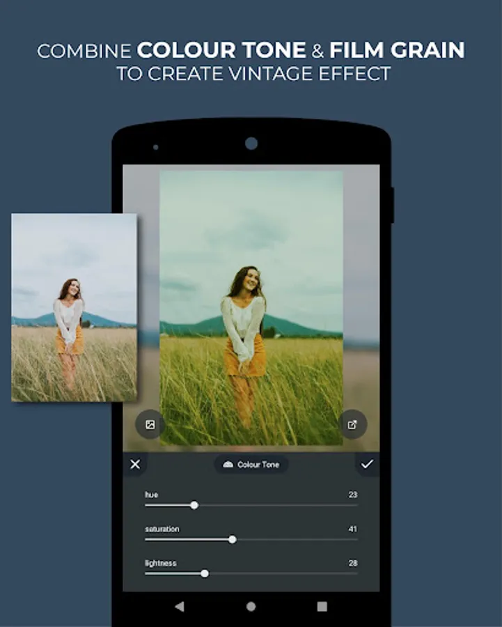 - Brightness, Contrast, Saturation, Temperature, Sharpness, Film Grain