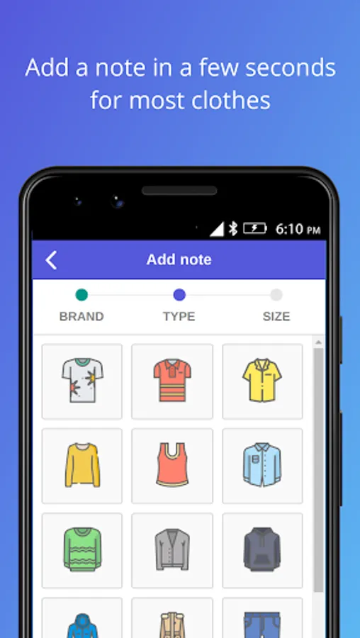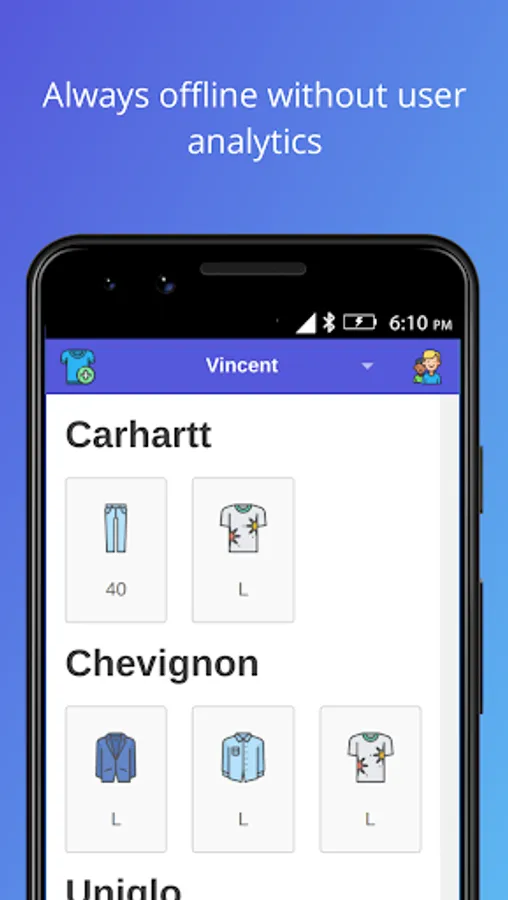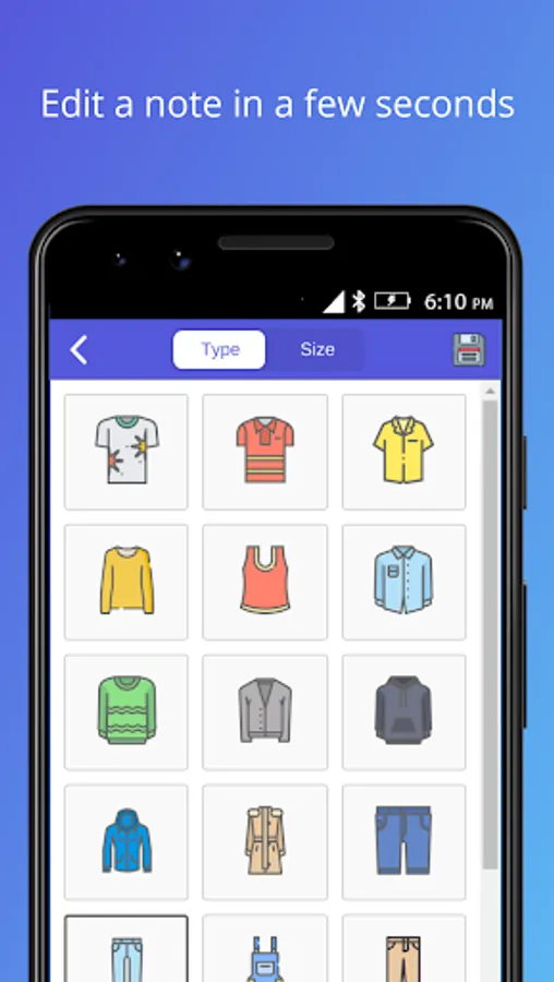 Quickly note for each member of your family his size for many brands and every items in your wardrobe.