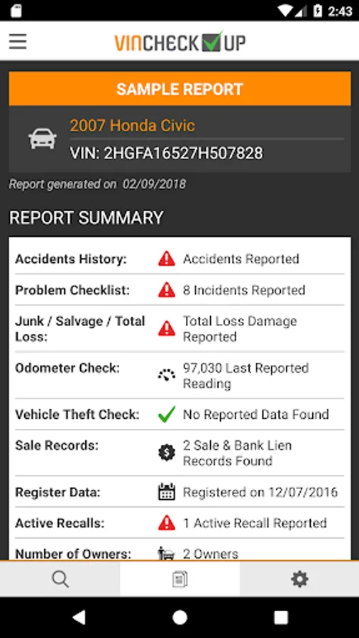 VINCheckUp Vehicle History reports are made up of multiple sections and contain a large amount of information on any vehicle sold post 1982.