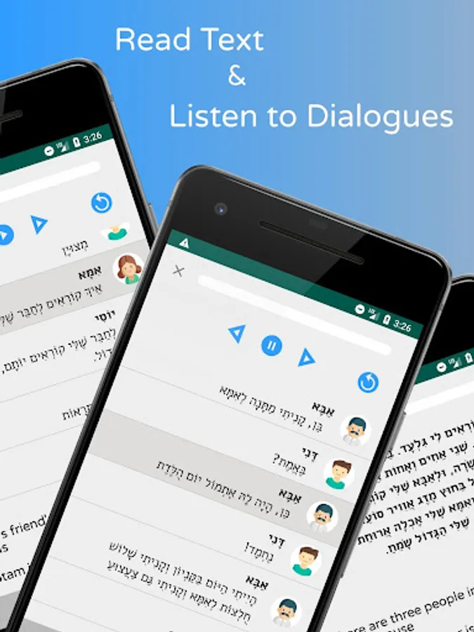 • Listen to the recorded dialogues of native Hebrew speakers.