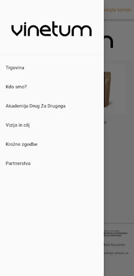 Mobile application for Vinetum.si business, to help customers give quick access to different parts of the business website