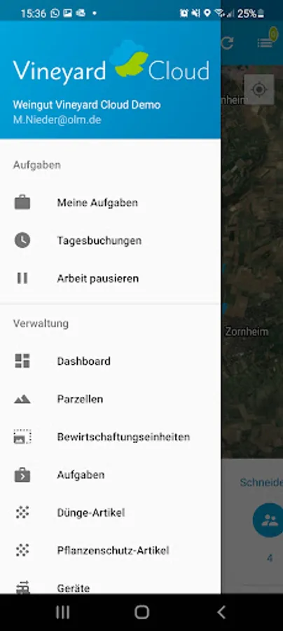 Whether classic work such as mulching, plant protection, fertilization, scoring or time recording ... with Vineyard Cloud you can control and evaluate all farm related processes.