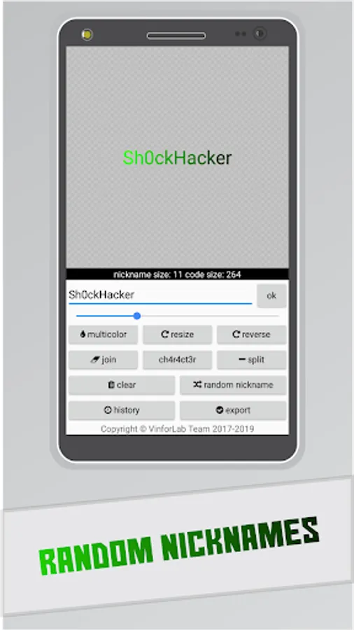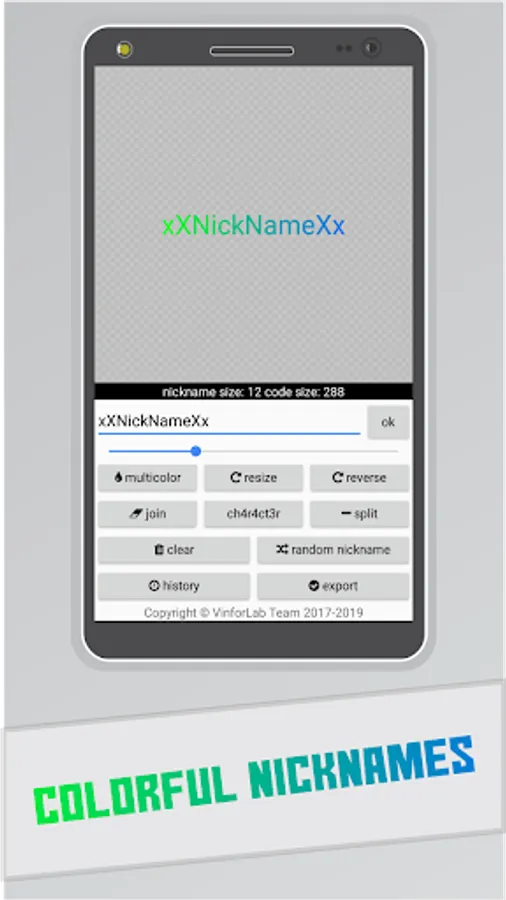 NikStudio is an application with a friendly interface that made it possible to create colorful nicknames. Generating code that works in unlimited text boxes and with support for RichText, in games created in Unity.
