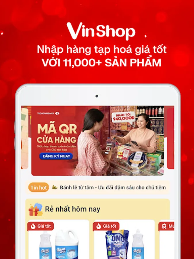 VinShop là ứng dụng giúp các chủ cửa hàng tạp hóa phát triển và mở rộng kinh doanh. Các chủ cửa hàng có thể tự nhập hàng nghìn mặt hàng đa dạng, sử dụng 24/7, giao hàng siêu tốc ngay ngày hôm sau kể cả thứ Bảy và Chủ Nhật.