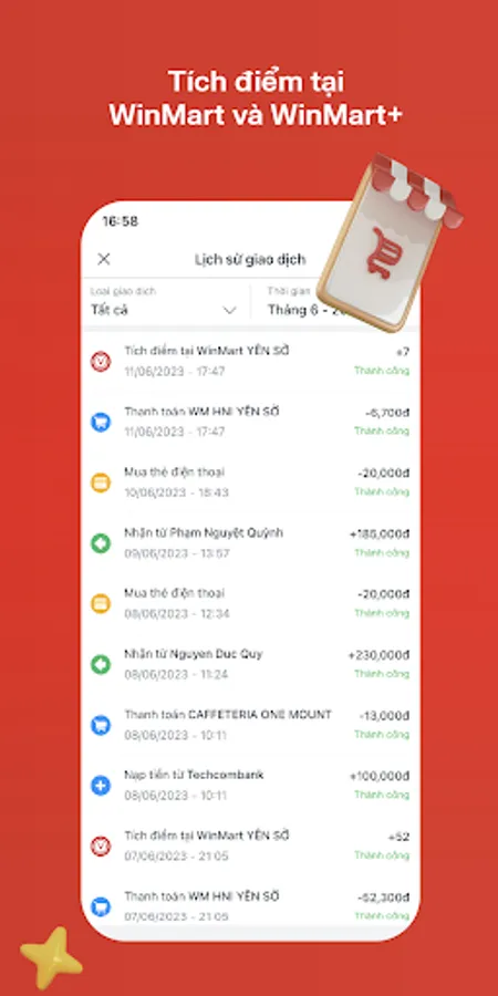 + Tích điểm cho mọi giao dịch từ 1,000đ khi đi chợ WinMart/WinMart+