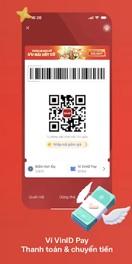 + Sử dụng ví điện tử VinID Pay thanh toán tiện lợi, chuyển tiền miễn phí, bảo mật chuẩn PCI DSS