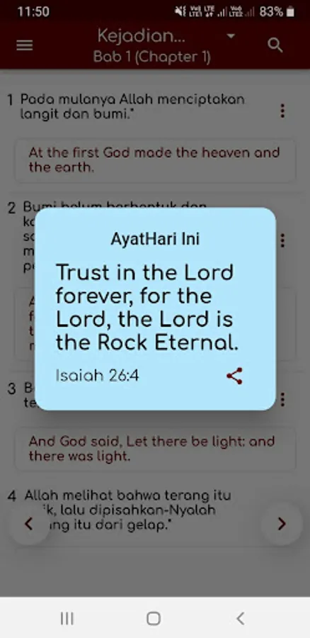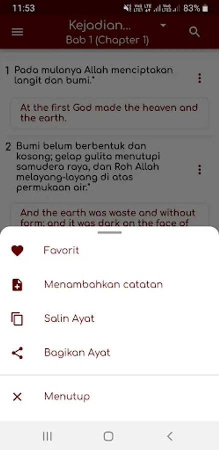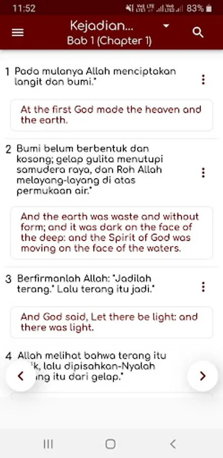 Antarmuka yang intuitif dan akses cepat ke buku, bab, dan ayat.
