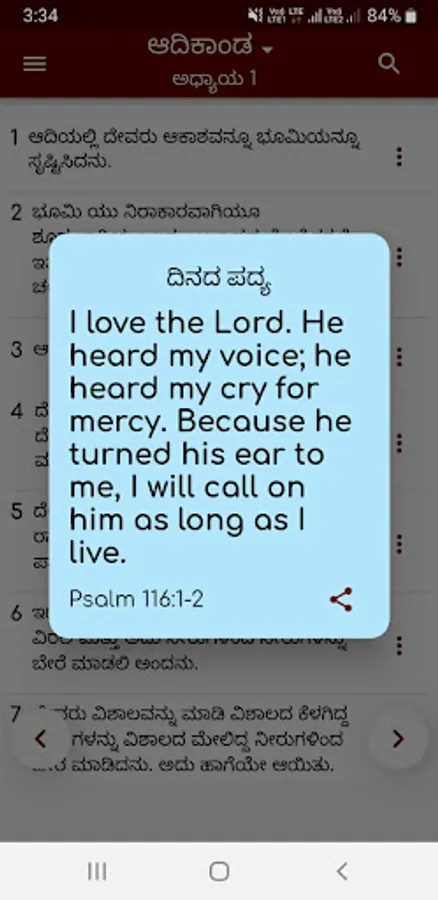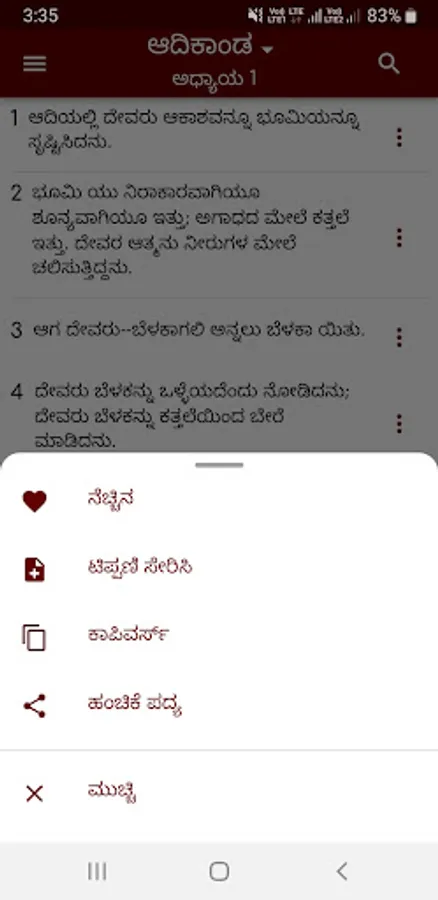 Kannada Bible also supports zooming, copying and sharing of the verses you like